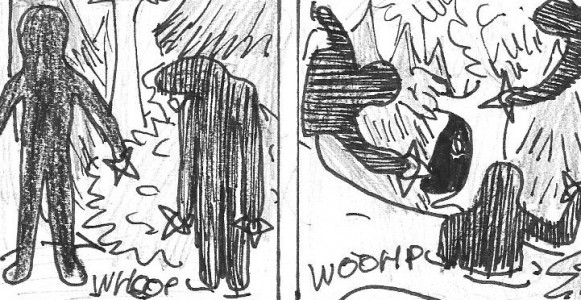 Ces clones lancent alors des shurikens pour disparaitre ensuite. Ils sont sans doutes reliés à un stock de shurikens grace à un ninjutsu spatio-temporel. Ils ont la particularité de lancer les projectiles selon la lumière des étoiles, les camouflant ainsi (Achimi dit qu'ils sont "invisibles la nuit"), ce qui est très efficace d'après ce que l'on a vu dans l'intro (le pauvre petit crimi n'a rien vu venir).